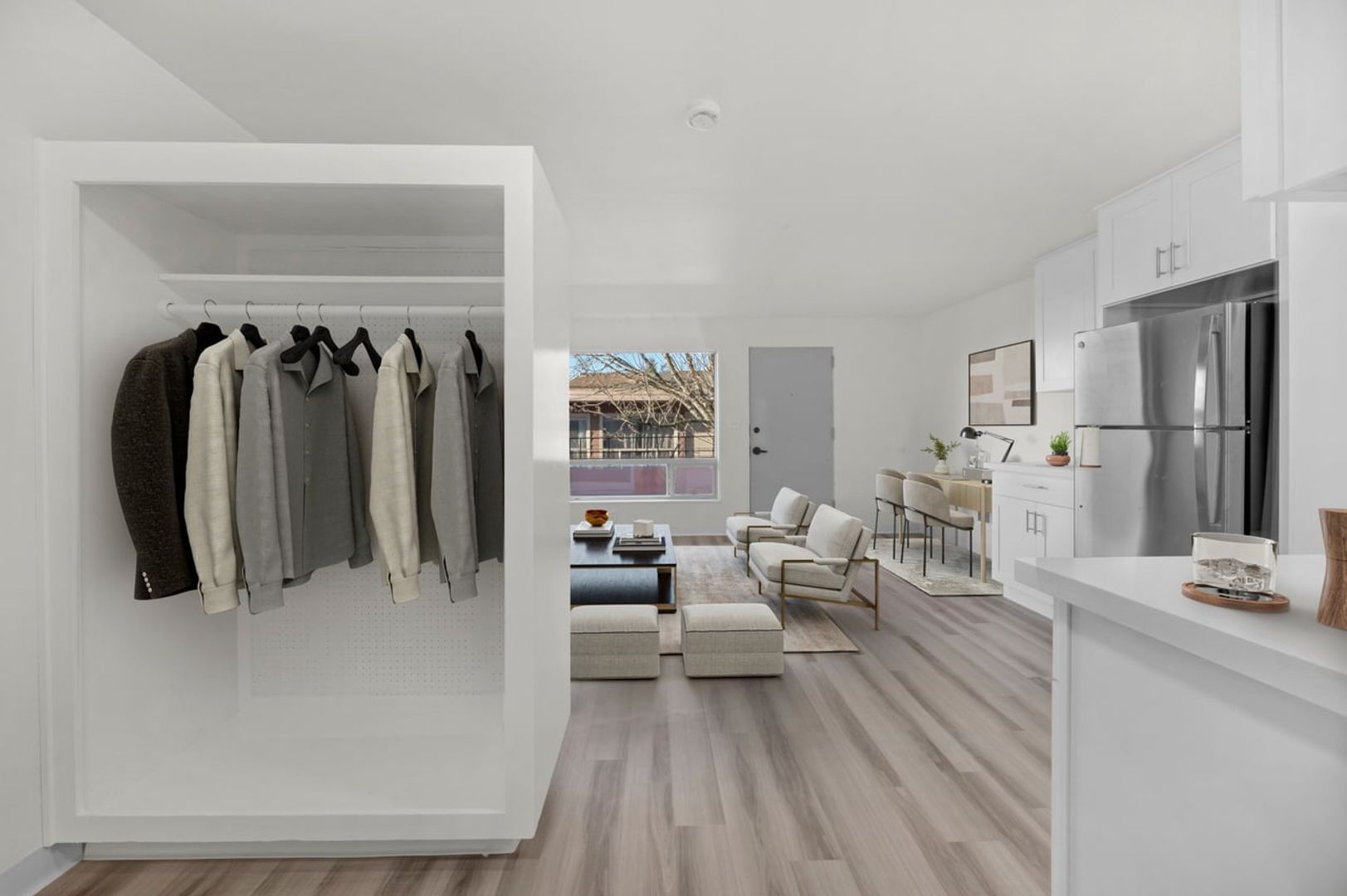 Inside your new home, you’ll find a warm, inviting layout with a cozy kitchen, a comfortable living space perfect for relaxing or hosting, and spacious closets to keep everything organized. Beautiful hardwood floors and oversized windows bring in tons of natural light, creating a bright, airy space you’ll love coming home to.